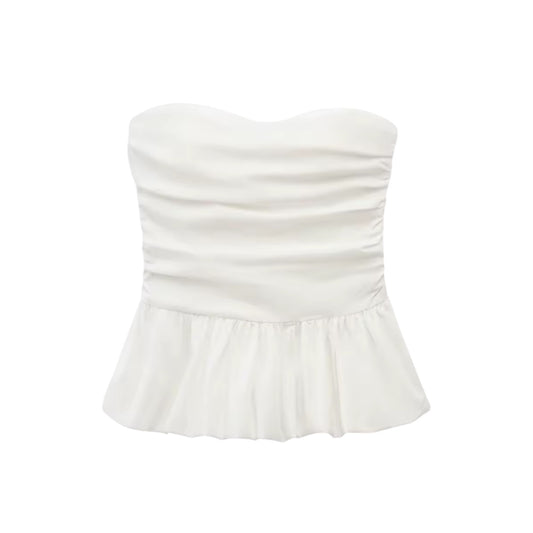 Süßes Off-Shoulder Set – Wellenkante & Plissee-Design