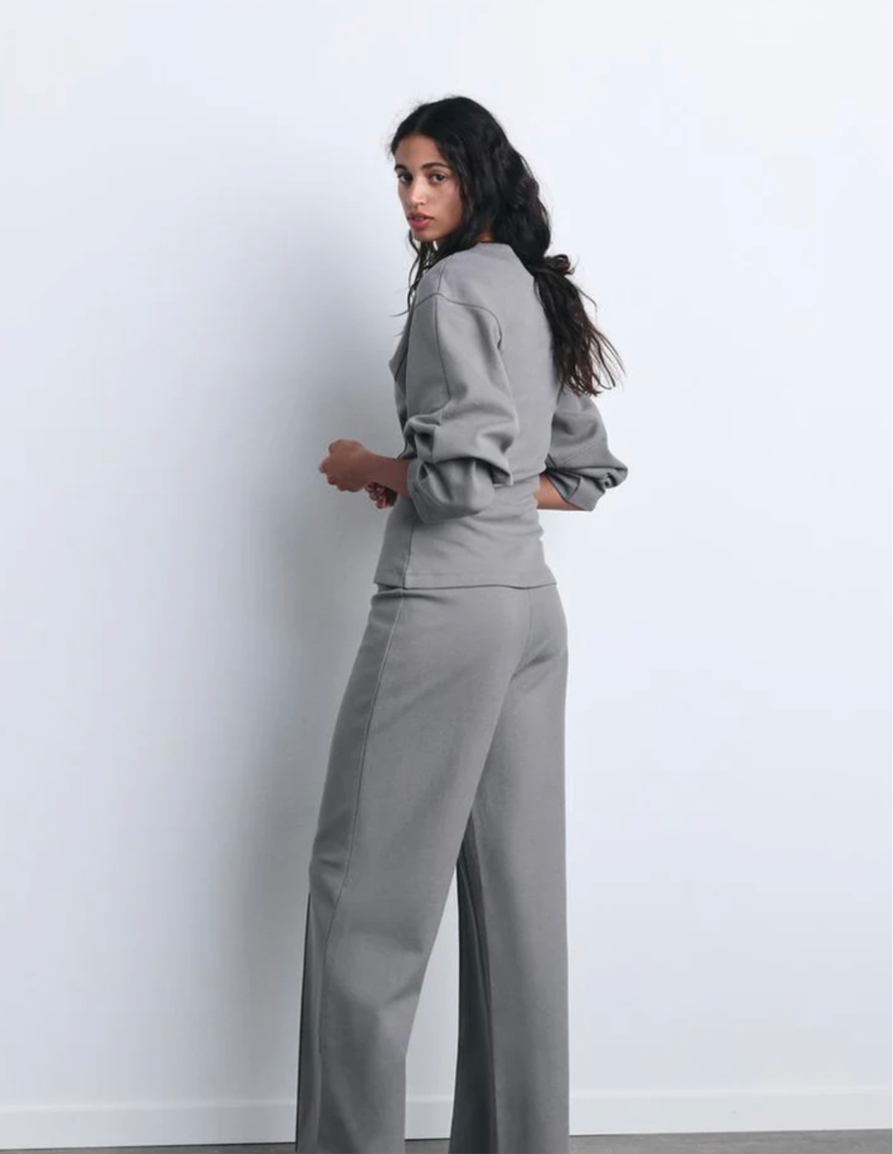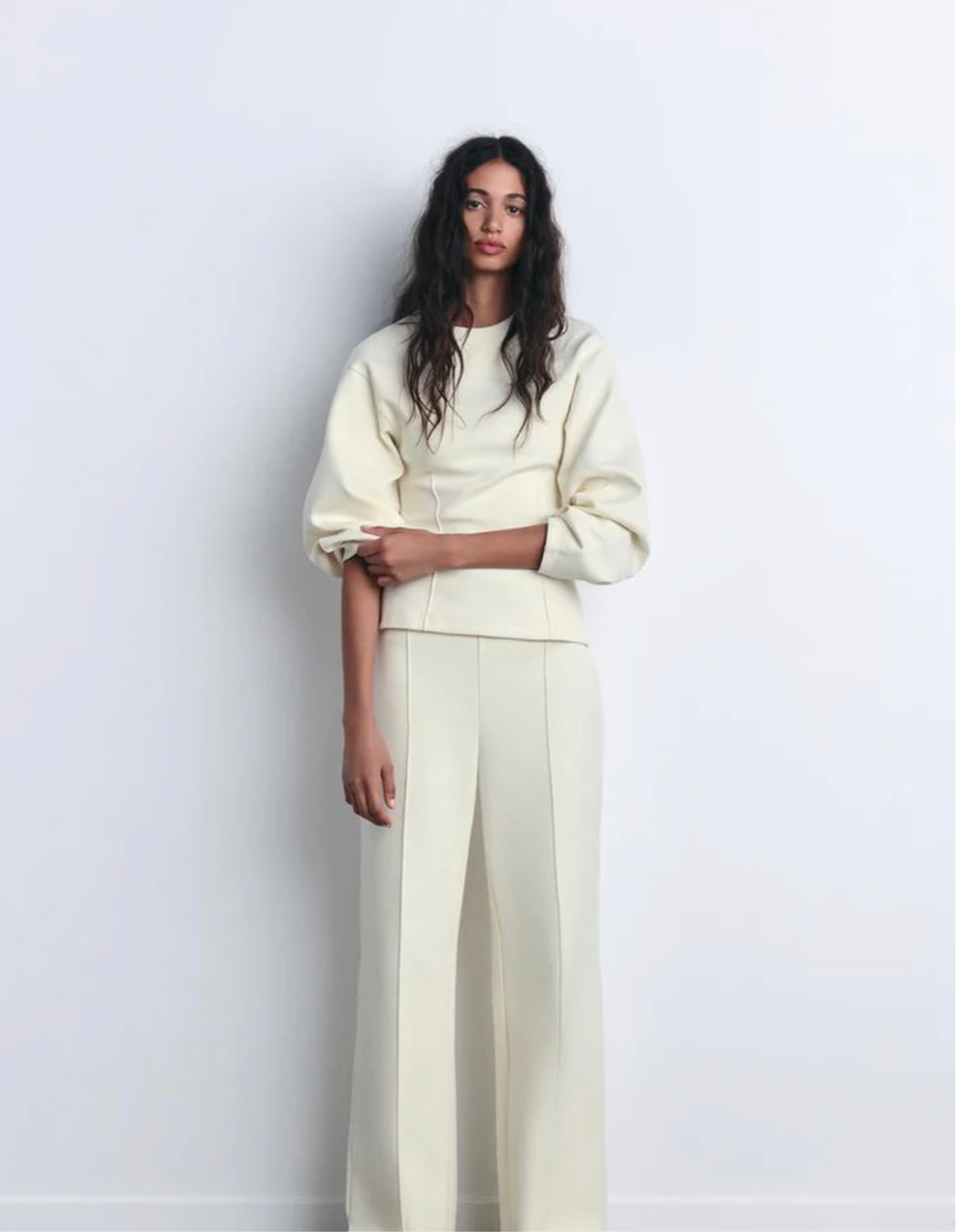 Modisches Damen-Set mit langer Hose und langärmeligem Oberteil, perfekt für die kalte Jahreszeit. Das Oberteil mit O-Ausschnitt und taillierter Passform betont die Figur, während die weiten Bein-Hosen Komfort und Stil bieten. Ideal für Freizeit, Urlaub oder elegante Alltagslooks. Damenanzug mit gefalteten Details, lässig und schick zugleich – ein Must-have für trendbewusste Frauen.