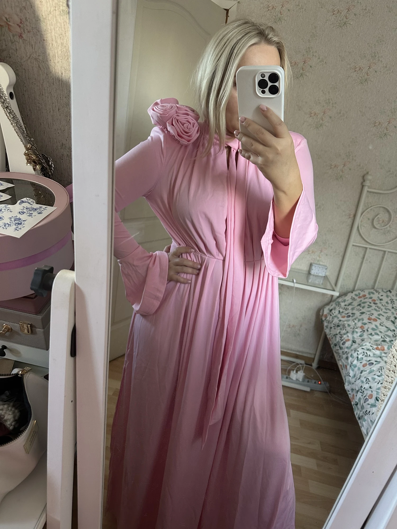 Dieses Damen Vintage Maxi-Kleid vereint zeitlose Eleganz mit modernen Details. Der tiefe V-Ausschnitt und das raffinierte Blumenmuster verleihen dem Kleid einen femininen und luxuriösen Look. Der geraffte Stoff sorgt für eine schmeichelhafte Passform und verleiht dem Design eine romantische Note. Perfekt für besondere Anlässe oder elegante Abendveranstaltungen.