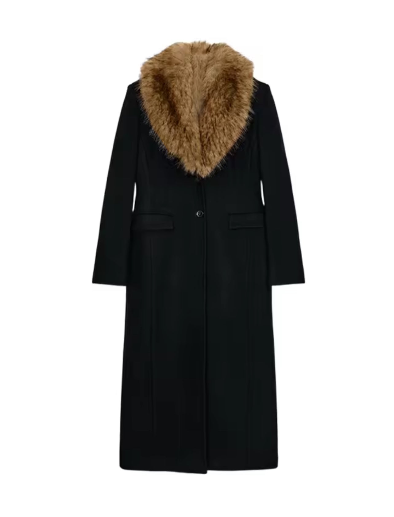 Taillierter Chapelle Mantel mit Kunstfellkragen